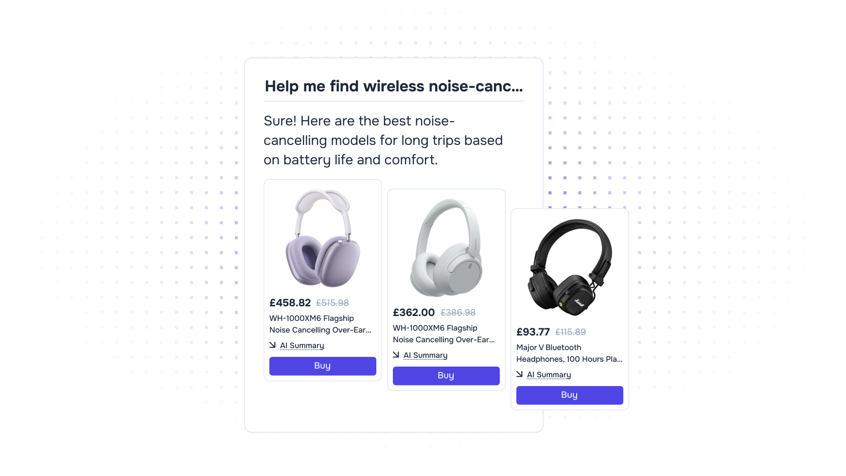Enhance your store with a conversational AI that actually understands what shoppers want.